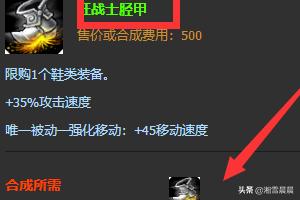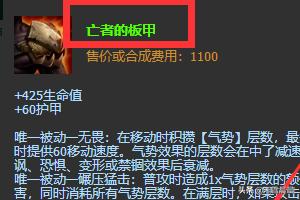 5、亡者的板甲:赵信这个英雄gank的时候不仅需要攻速,移动速度也是需要的,在装备里选择亡者的板甲,可以在叠满被动后有着移动速度加成。